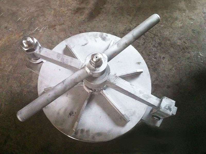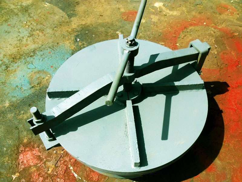 旋柄快開人孔即縮小的人孔,其安設(shè)是為了安裝、拆卸、清洗和檢修設(shè)備內(nèi)部裝置。 旋柄快開人孔的結(jié)構(gòu)基本相同,由一個短筒節(jié),蓋上一塊盲板構(gòu)成。旋柄快開人孔直徑一般為150~250mm,應(yīng)使工人戴上手套并握住工具的手能方便地通過,標(biāo)準(zhǔn)化旋柄快開人孔的公稱直徑有DN150、DN250兩種。當(dāng)設(shè)備公稱直徑大于或等于1000mm時,宜設(shè)置旋柄快開人孔。