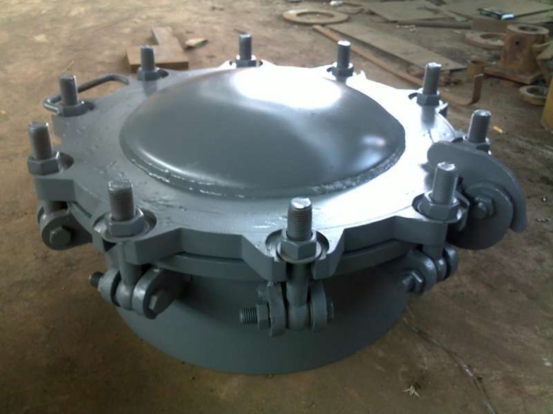 回轉蓋拱蓋人孔注意事項:人孔高度H1系根據設備的直徑不小于人孔公稱直徑的兩倍而定;如有特殊要求,允許改變,但需注明改變后的H1尺寸,并修正人孔總重。